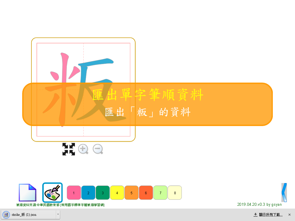 - 2019.04.23 可依填入的顏色區分筆畫的順序。